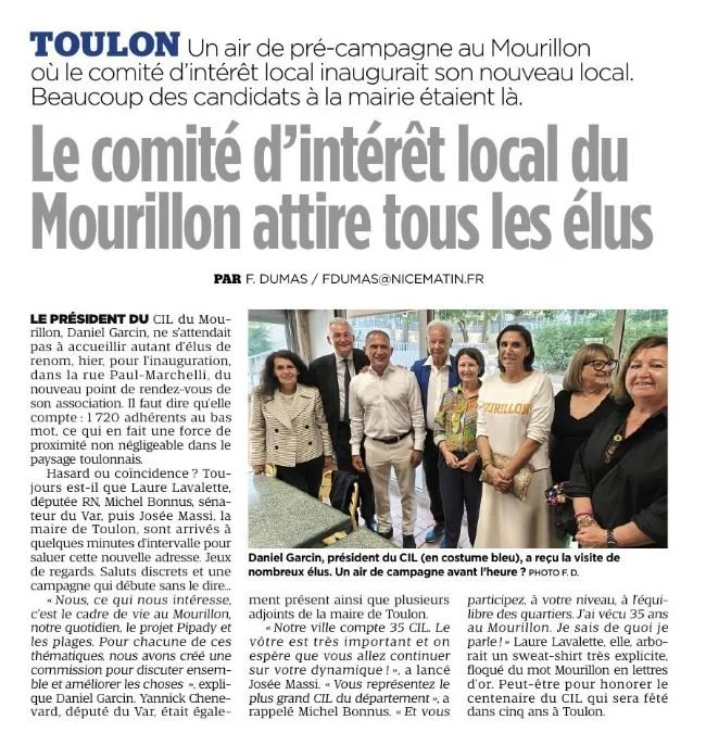 Inauguration le 19 septembre 2025 de la nouvelle salle de réunion du CIL DU MOURILLON au club des retraités Impasse Paul - Marchelli en présence de Mme La Maire José Massi et d’autres membres de la mairie.